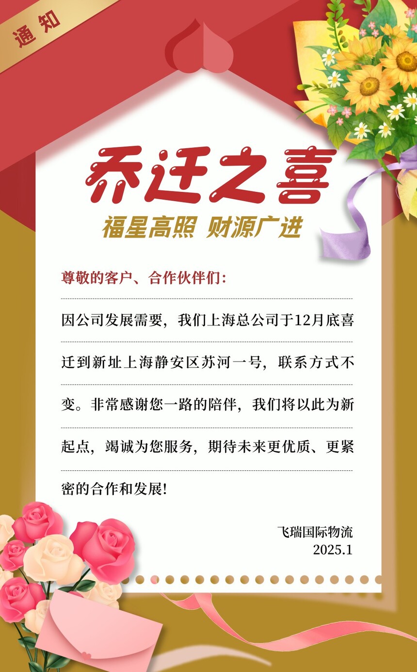 热烈祝贺上海飞瑞国际物流乔迁之喜。